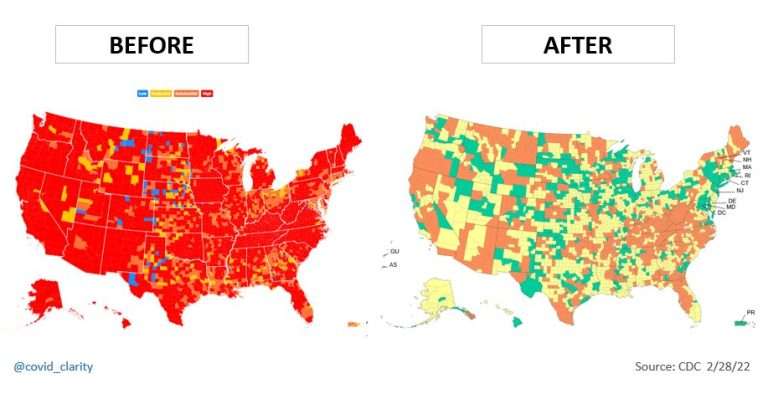 The primary change is the appetite for non-pharmaceutical interventions. Americans have grown tired of them, and this above all else is likely what prompted the CDC to change its COVID risk formula, which virtually overnight took the vast majority of the country from a state of high community transmission to low or moderate community transmission—even though cases and mortality remain high.