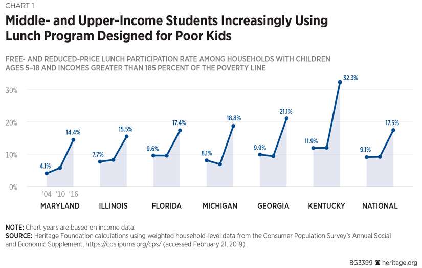 Doing so would have no impact on children from low-income families because these children would still be eligible for free- and reduced-priced meals. The move would simply help to control school meal programs that are ballooning into a federal food entitlement for every child, regardless of need.