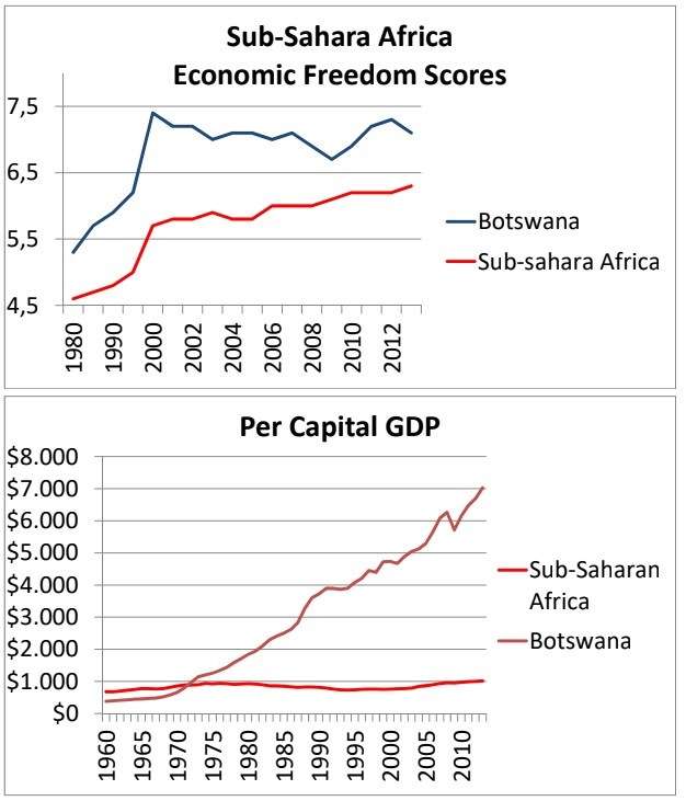 The importance of economic freedom is well shown by the most important case studies from different continents: Chile (South America), Singapore and Korea (East Asia), and Botswana (Africa). In all these prominent cases, economic freedom propelled these societies to a high and sustainable economic growth which led them to prosperity, compared to their neighbors.
