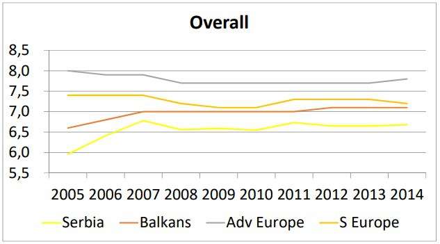 Here’s a chart comparing economic freedom in Serbia with other European regions.