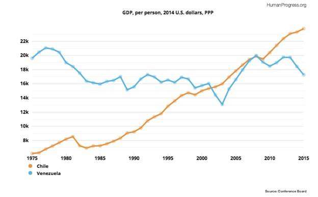 Ask yourself which country offers more opportunity, especially for the poor? The obvious answer is Chile, where poverty has rapidly declined ever since the country shifted to free enterprise. In Venezuela, by contrast, poor children die of malnutrition thanks to pervasive interventionism.