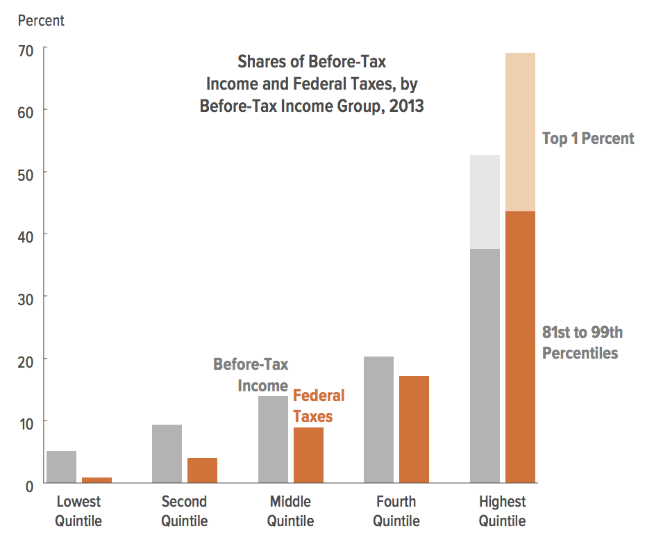 To gain a clear picture, have a look at this Congressional Budget Office study release in June 2016. It’s a close study of the income earned and taxes paid in 2013. The study observes that the tax system has never been more progressive. It will not be possible to reform taxes in a positive way without addressing that reality that the rich are being pillaged, a fact which might have something to do with causing slow economic growth.