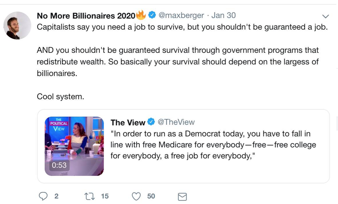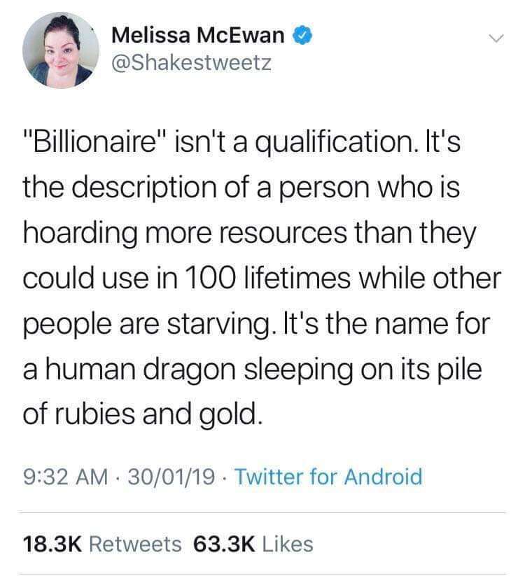 And while it might be simple enough to ignore the persistent bleating of the Twitterati in this matter, you can hardly swing a cat without hitting a mainstream article calling to abolish billionaires or openly questioning whether billionaires should exist or insisting that their simply being is indicative of the immorality of the capitalist system and so on and so forth. It’s almost like they’re trying to validate my belief that—along the same lines as Rule 34—if it exists, there is a competitive version of it, including this new sport of “Who Can Hate Billionaires the Hardest?”