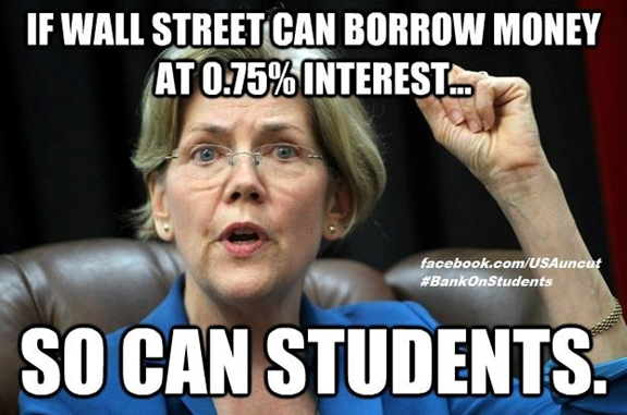An Internet meme featuring U.S. Senator Elizabeth Warren is currently circulating to boost support for her very first bill, the “Bank on Student Loan Fairness Act,” introduced on Wednesday.