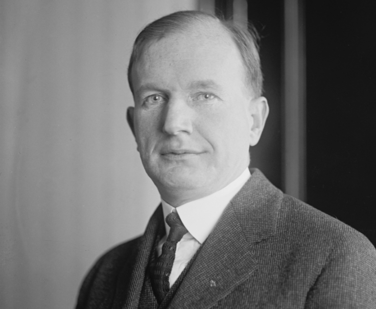 His political career began in 1910 when, at age 28, he was elected to the Montana legislature. After running unsuccessfully for Governor in 1920, he won a US Senate seat two years later. Wheeler was a staunch ally of Roosevelt’s New Deal policies, but he courageously broke with FDR over the court-packing plot.
