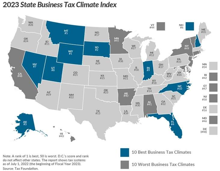 Last year, the top-4 states were Wyoming, South Dakota, Alaska, and Florida. This year’s report, authored by Janelle Fritts and Jared Walczak, says the top-4 states are… (drum roll, please) …exactly the same.