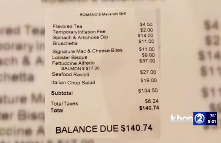 A group of friends had just finished a meal at Romano’s Macaroni Grill in Honolulu when one of them noticed something odd about the check. As a local television news station reported in April, a “Temporary Inflation Fee” of $2 was nestled inconspicuously between the $4.50 Flavored Tea and the $14.00 Spinach & Artichoke Dip.