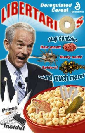 Let’s close with a reference to another bit of anti-libertarian humor. Last year, I shared an image showing a satirical box of libertarian cereal, which I freely admitted was very amusing. But I then made the obvious point that private companies have zero incentive to harm or kill their customers.