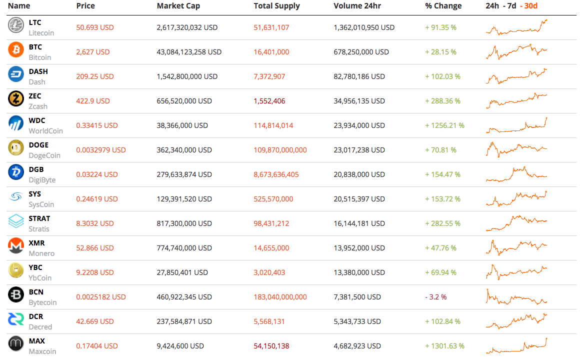 Snapshot of non-BTC cryptocurrency prices on this date: