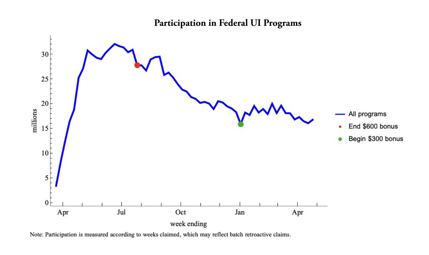 The economists ultimately conclude that “it is now nearly beyond dispute that supplemental unemployment benefits are reducing employment” and that “if Congress or the remaining states were to suspend the weekly benefit supplement, several million more workers would gain employment over the summer months.”