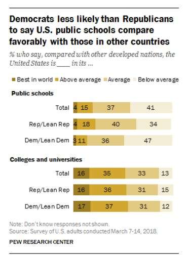What’s perhaps more surprising about this is that large numbers of Democrats and Republicans agree that the nation’s public schools are below average. This is likely the case for several reasons, including strained funding, failed standards such as Common Core, and abysmal scores on national assessments.