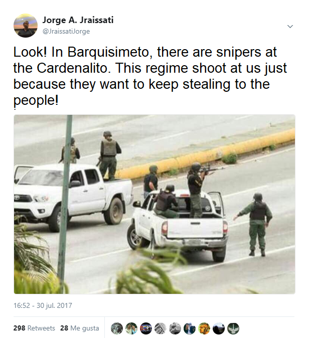 The regime is using its tyrannical power to silence us, to force us to give up our fight and to send a clear message: that they will do anything to maintain their communist grasp on Venezuela. In fact, the dictator Nicolas Maduro, on national television, unabashedly said: “what couldn’t be done with votes, we would do with weapons.”