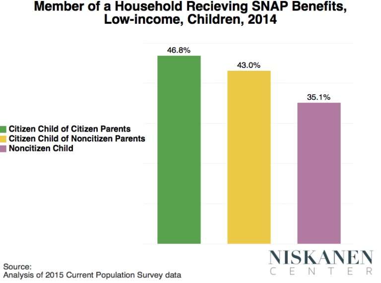New report shows that children born to American citizens are the most likely to receive food stamps.