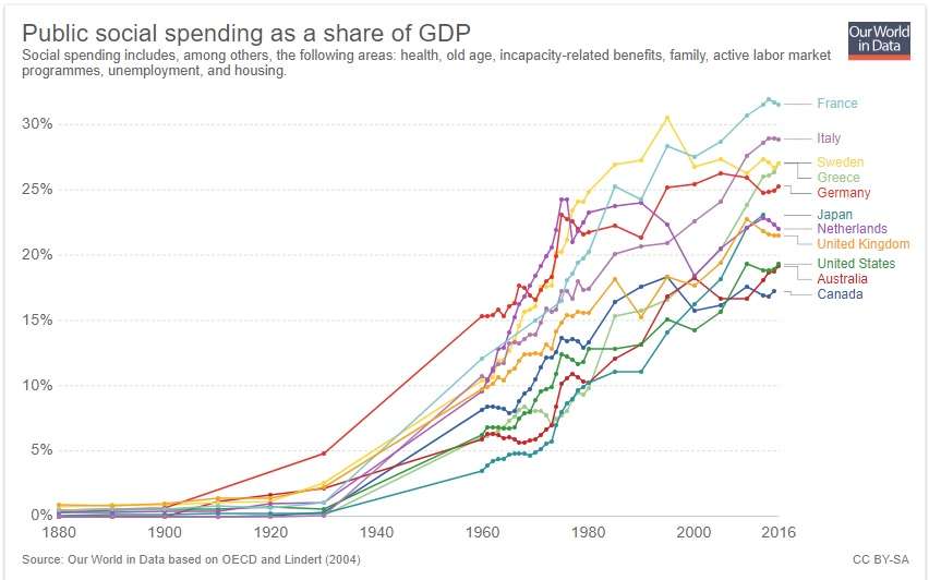 I shared a version of this data back in June, asserting that the explosion of social welfare spending made this “the western world’s most depressing chart.”