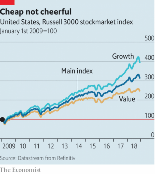 Speaking of efficient markets, there’s another nail in the coffin of anti-EMH theories. When I started blogging in early 2009, people pointed me to all sorts “anomalies,” which they believed show that markets are not efficient. I’ve done many posts explaining how those theories have failed to do well in the period since I became aware of them. Recently, I learned of the failure of another anti-EMH theory that was provided to me back in early 2009—value stocks as a good investment: