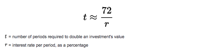 The rule of 72 is this–if you take a constant rate of growth of anything (savings accounts, price levels, or even the size of trees) and ignore the percent sign, then you divide 72 by that number, that will tell you how long it will be before the thing in question doubles in size.