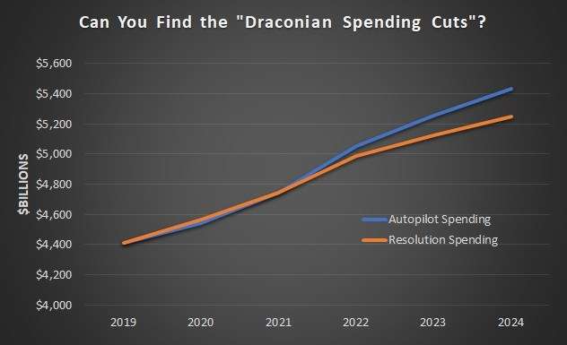 There are zero genuine cuts. Instead, spending increases by an average of 3.5 percent annually.