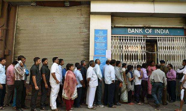 People waiting in line to deposit bank notes before the deadline. The 500 and 1,000 rupee notes were scrapped.