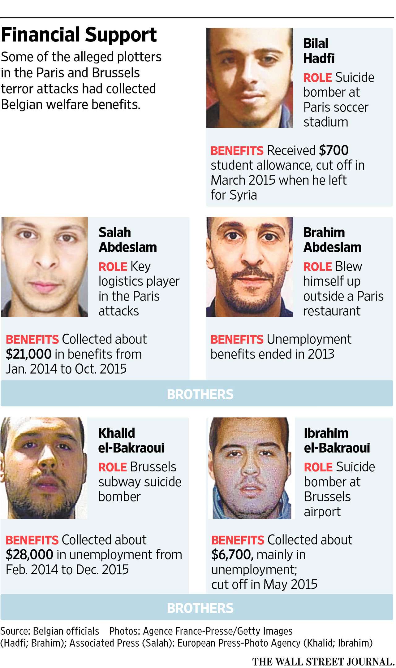 Welfare fraud was key to funding terror attacks in Brussels in March and in Paris last year. Terrorists collected around £45,000 in benefits which they used to pay for the brutal attacks in the major European cities … Meanwhile, Danish authorities came under fire recently after it emerged 36 Islamic State fighters continued to receive benefits for months after leaving the country to join other members of the brutal regime in Syria and Iraq.