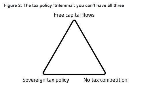 Theory and evidence suggest that countries may have any two of free capital mobility, an independent tax policy and no tax competition (Figure 2). But they cannot have all three.