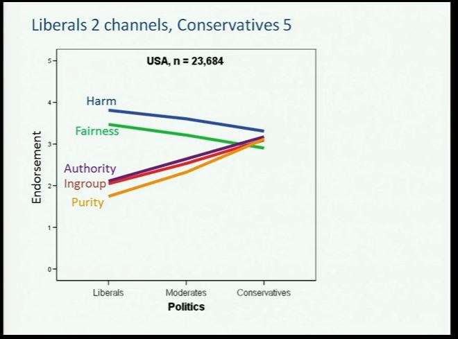 Now, Haidt is not suggesting conservatives are superior to liberals. He points out that conservatives tend to value order even at the cost of those at the bottom of society, which can result in morally dubious social implications. Liberals, however, often desire change even at the risk of anarchy.