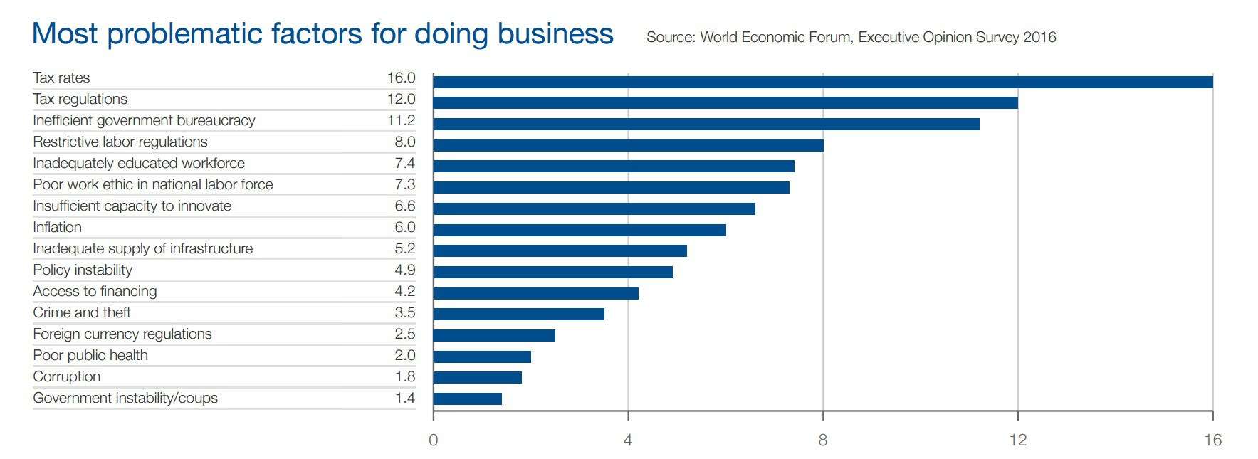 Moreover, if you look at the the biggest obstacles to economic activity in the United States, the top 4 deal with bad government policy.