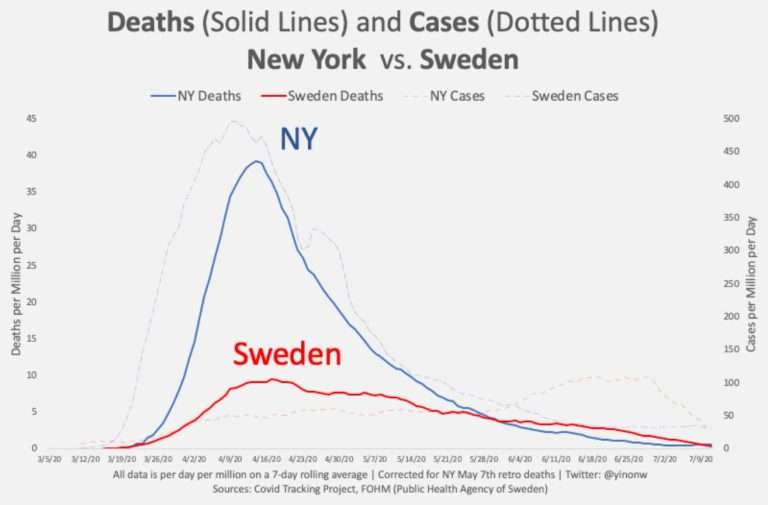 A simple comparison between New York and Sweden shows the Empire State has suffered far worse from COVID-19 than the Swedes. Yinon Weiss, an entrepreneur and founder of Rally Point, recently compared Sweden and New York using data from the COVID Tracking Project.