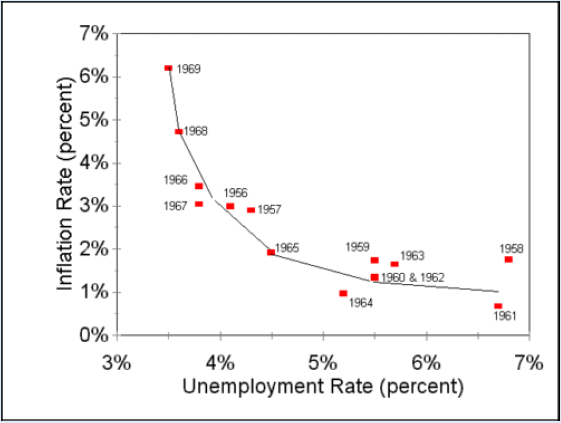 Issues with Keynesian economics are many, but the major idea of interest was Keynesian economists’ adoption of the belief that there is a tradeoff between inflation and unemployment. In other words, when inflation goes up, unemployment goes down and vice versa.