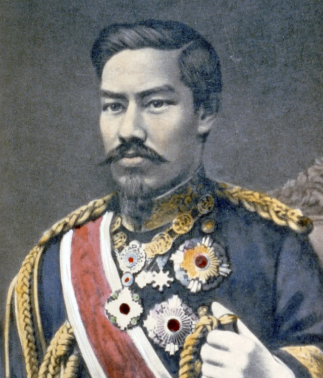 Image: portrait of emperor Meiji of Japan in 1888 (public domain)