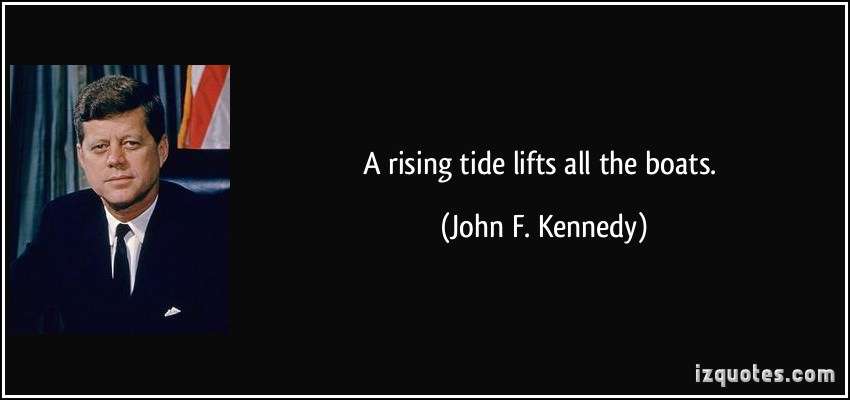 Both these views are wrong. President John F. Kennedy was right about a rising tide lifting all boats.