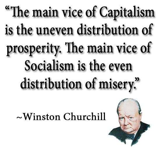 who famously observed that “The inherent vice of capitalism is the unequal sharing of blessings; the inherent virtue of socialism is the equal sharing of miseries.”