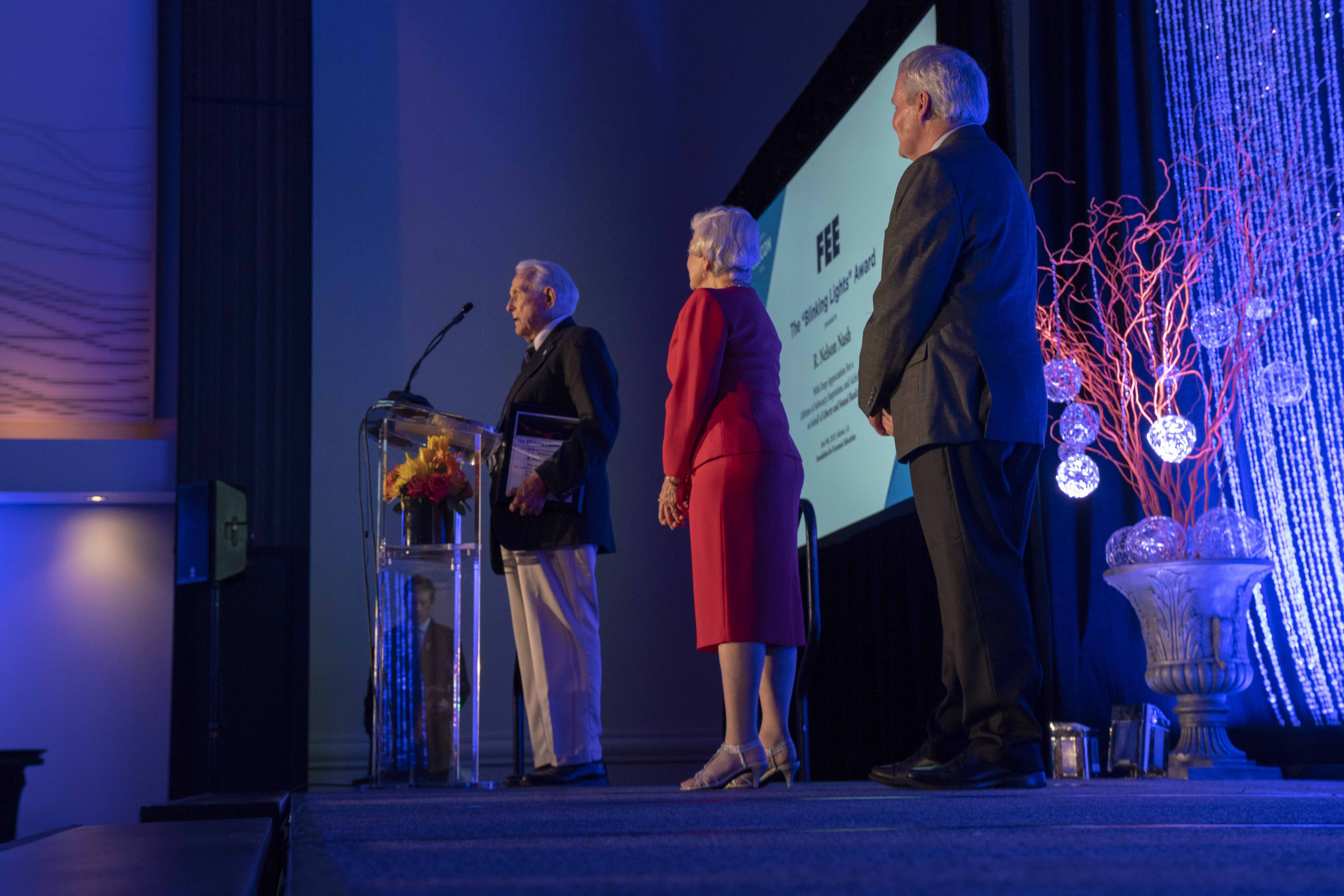 With great pleasure at the closing banquet of FEEcon on June 9, FEE bestowed its 2018 Blinking Lights Award upon a dear friend and one of our most longstanding and faithful supporters, Nelson Nash of Birmingham, Alabama.