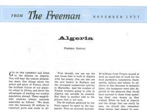 In this article, excerpted from his “What is seen and what is not seen,” Bastiat explains the alleged benefits of “stimulus” spending in Algeria must be balanced against the taxes required to pay for that stimulus. This version was published in The Freeman in the November issue of 1957.